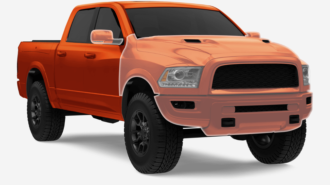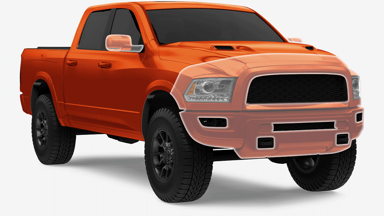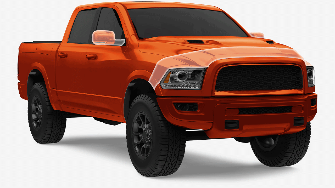 Vous recherchez une protection maximale ? Le forfait Couverture complète offre une protection intégrale de la surface peinte de votre camion grâce à un film de protection performant.