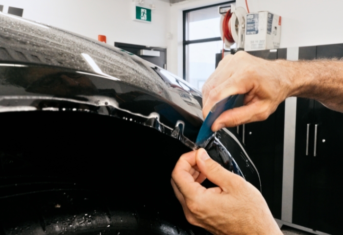 Le film de protection de peinture (PPF) agit comme un bouclier contre les pierres, le gravier et les débris sur la route.